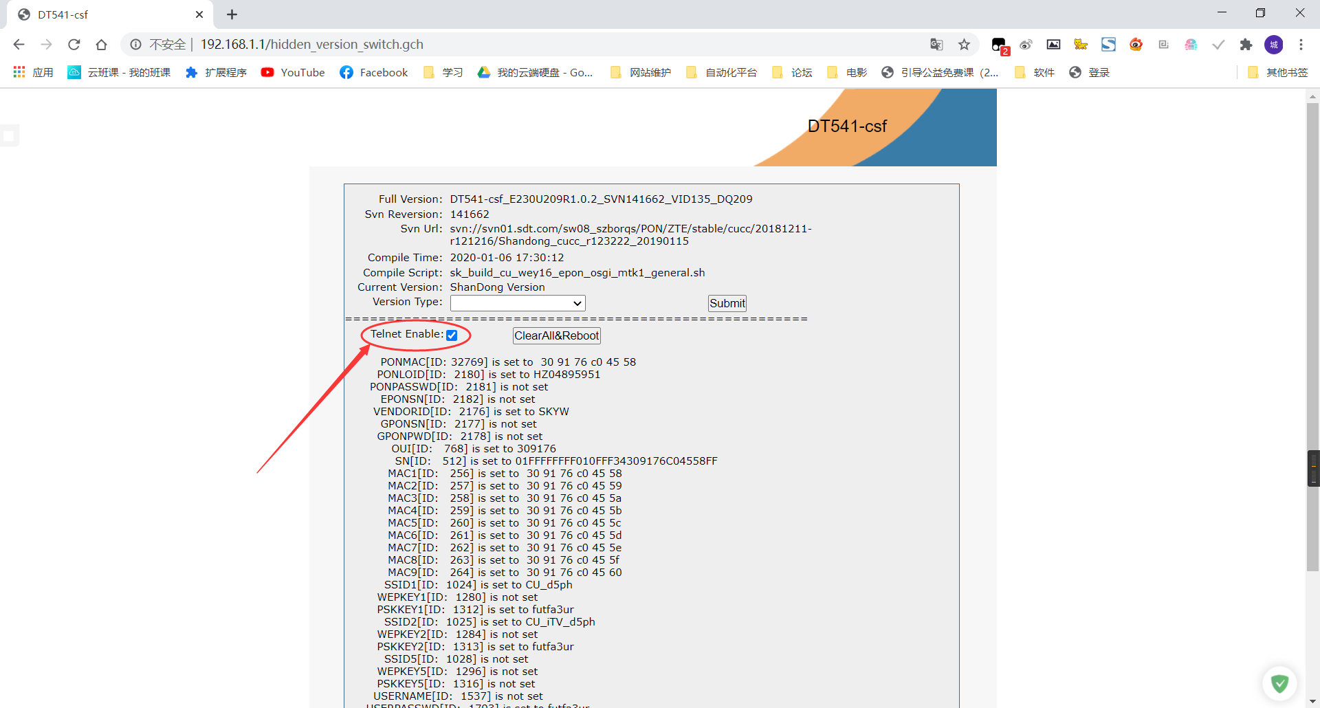访问以下链接,回车进入,将Telnet Enable选项勾选打开。